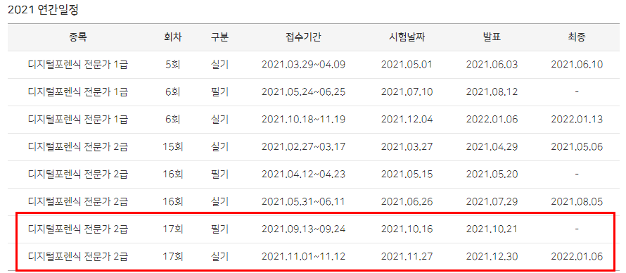 현재 디지털포렌식 전문가 자격시험은 1급(민간), 2급(공인)으로 나뉘어져 있습니다.