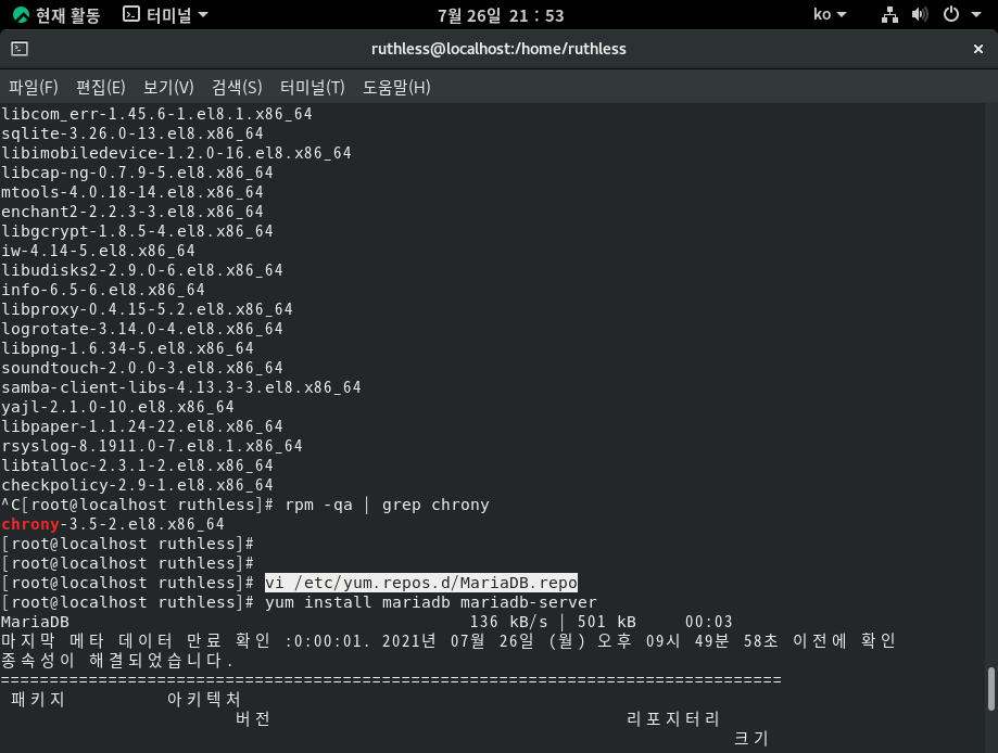 | [Rocky Linux] 록키 리눅스 마리아DB(maria DB) 설치 (1) | 2021.07.27 |